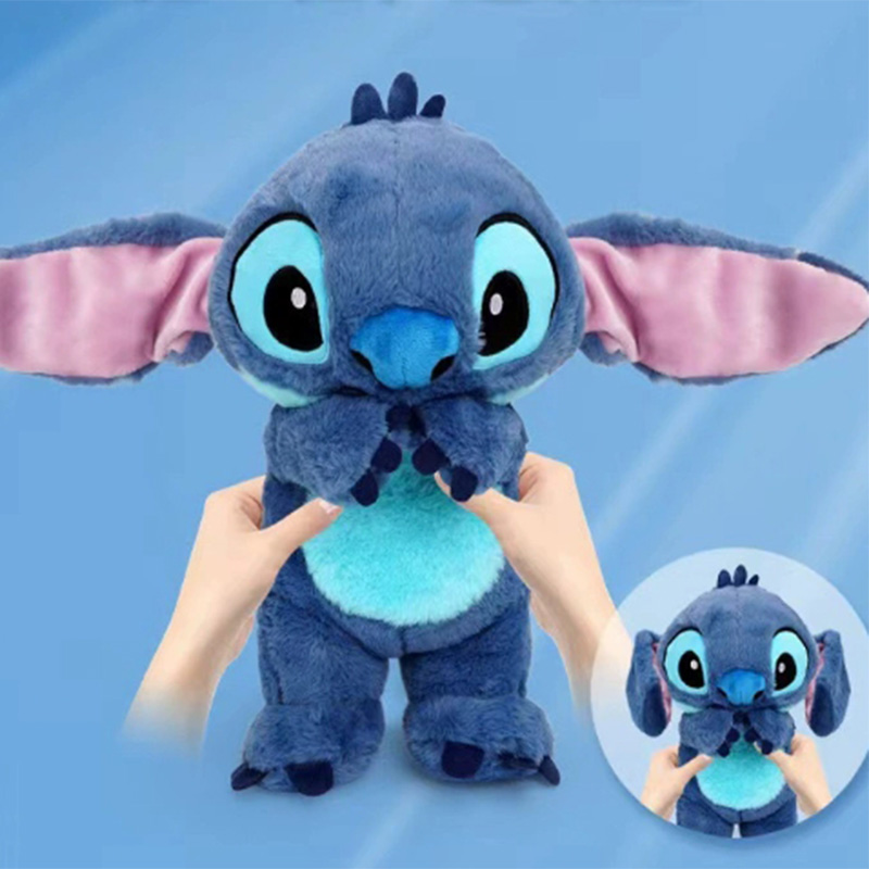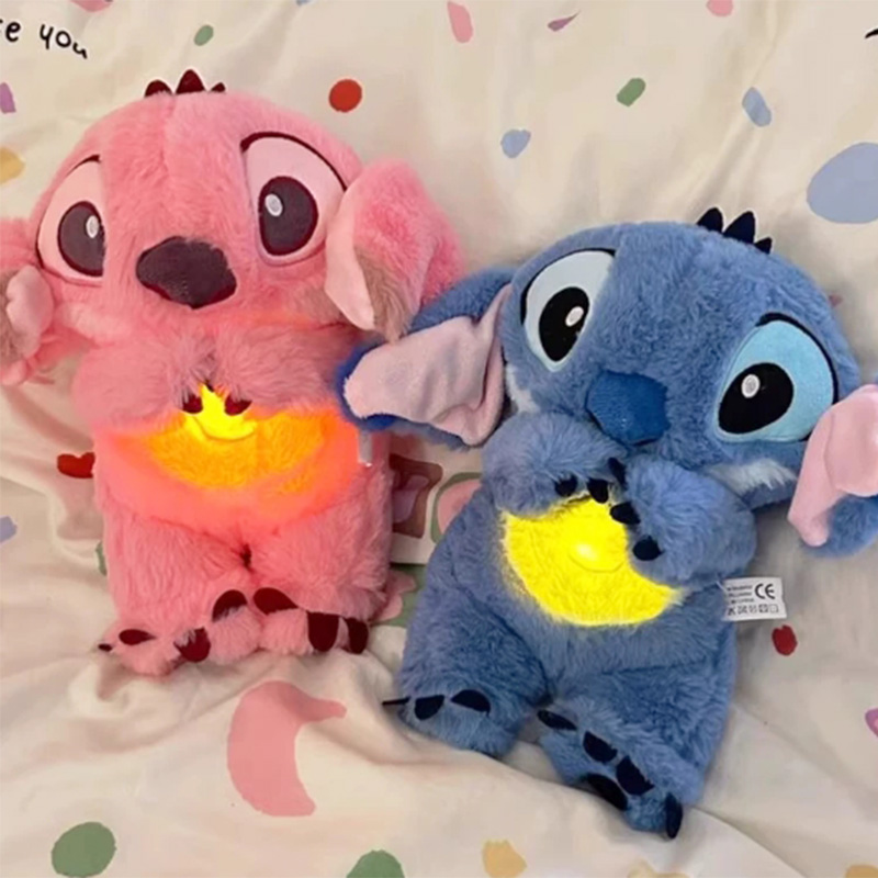 Breathy Stitch er et funktionelt overdådigt legetøj, der kombinerer beroligende og lullende funktioner. Dette legetøj har funktionerne ved vejrtrækning og glødende, musikafspilning samt design af bevægelige ører. Tryk på dens mave og dets ører vil stå op.