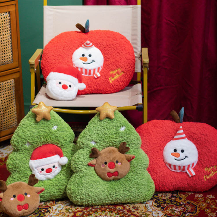 Dette bløde legetøjs juletræ kommer i to stilarter: æbleformet og træformet. De små overdådige dekorationer har tre stilarter: Julemanden, elg og snemand. Der er et rundt huldesign i midten af puden, så du kan indsætte de små dekorationer inde som en udsmykning. Du kan frit kombinere og adskille dem i henhold til dine præferencer, hvilket gør det meget spillbart.