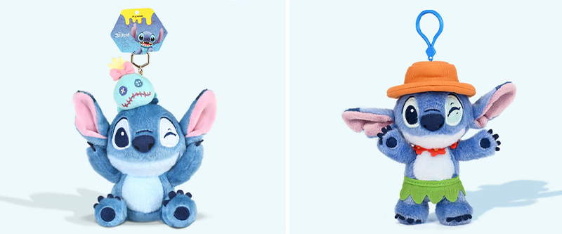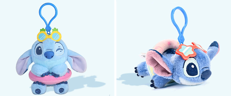 Hvert vedhæng er lavet af blødt plysmateriale med lyse farver og et design, der præcist genskaber billedet af Stitch. Størrelsen på dette vedhæng er mellem 10 og 14 cm. Designet af den hængende ring er også mere praktisk til dekoration. Det kan hænges på en taske eller bruges til at hænge bilnøgler. Det er både æstetisk tiltalende og praktisk.